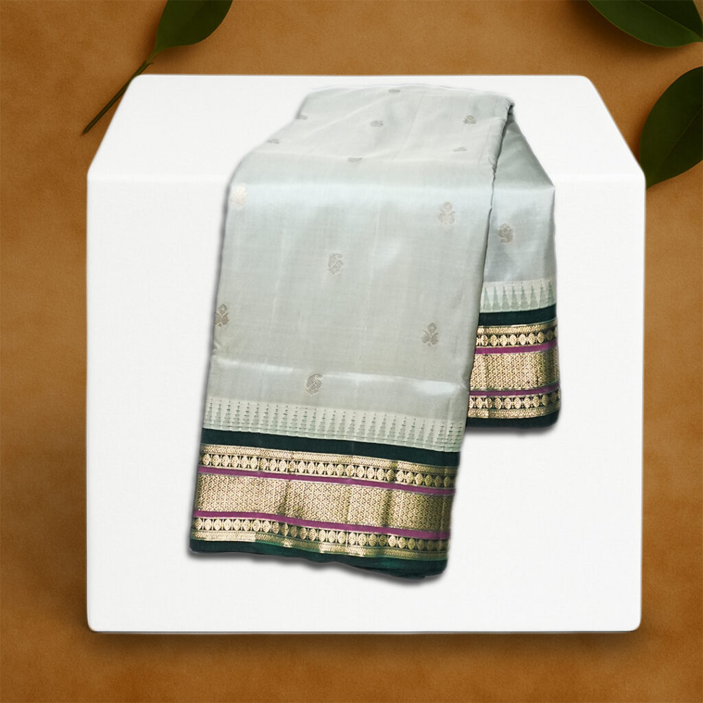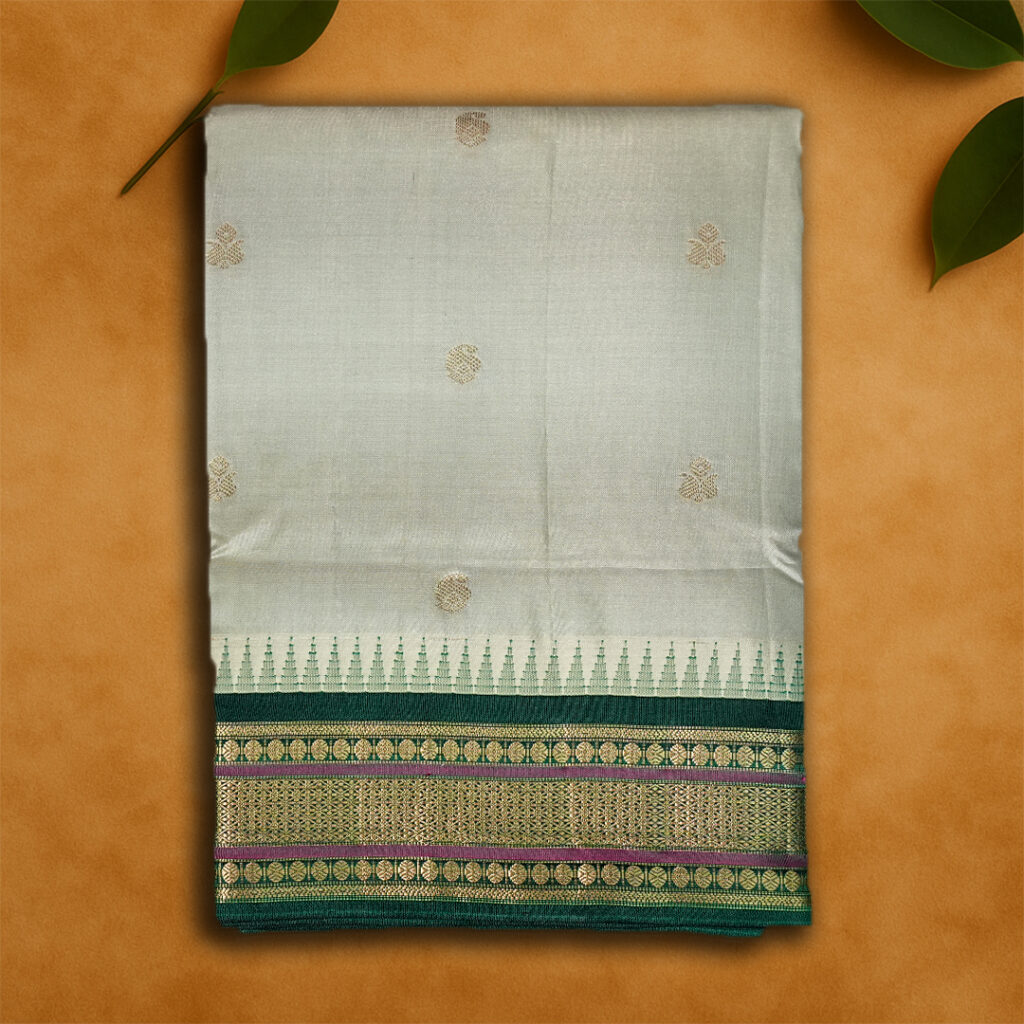Kuttu Saree pure silk with temple border, Contrast Pallu and Blouse with small motifs